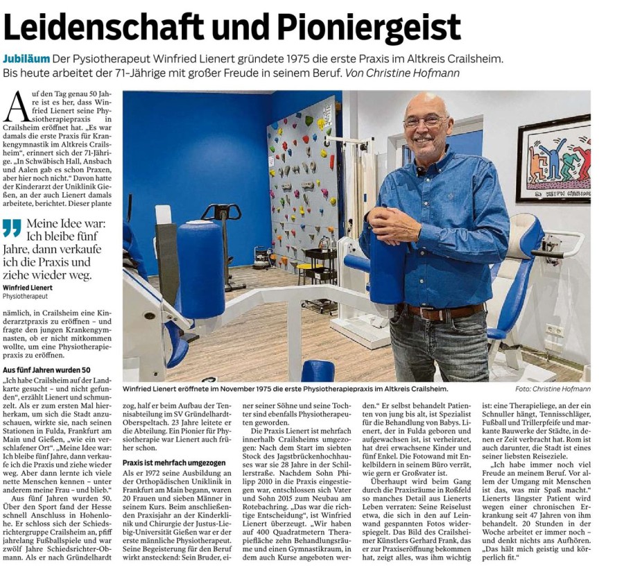 Bei unserer therapeutischen Tätigkeit geht es vor allem darum, mit individuellen Lösungen für Ihre Gesundheit und Ihr persönliches Wohlbefinden zu sorgen. Moderne Technik, ein geschultes Team, regelmäßige Fortbildungen und der Blick auf aktuelle Behandlungsmethoden sind für uns dabei eine Selbstverständlichkeit. Abgerundet wird unser Profil durch jahrelange Erfahrung in sämtlichen Bereichen der Physiotherapie und einem großen Kreis zufriedener Patienten.